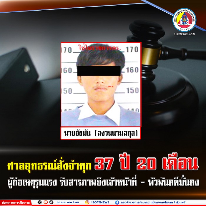 และต่อมาเมื่อวันที่ 29 พฤษภาคม 2568 ศาลอุทธรณ์ ภาค 9 พิพากษาแก้คำพิพากษาศาลชั้นต้นจาก “จำคุก 4 ปี 16 เดือน”เป็นให้ลงโทษ “จำคุกตลอดชีวิต” นายอัซมัน (สงวนนามสกุล) จำเลย ความผิดฐาน ร่วมกันสะสมกำลังพลหรืออาวุธฯ ร่วมกันมีอาวุธปืนของผู้อื่นที่ได้รับใบอนุญาตไว้ในครอบครองฯ และพยามฆ่าเจ้าพนักงานขณะกระทำตามหน้าที่ พกอาวุธปืนโดยไม่ได้รับอนุญาตฯ แต่เนื่องจากจำเลยให้การรับสารภาพในชั้นพนักงานสอบสวนลดโทษให้กระทงละหนึ่งในสาม คงเหลือ “จำคุก 37 ปี 20 เดือน” (ขังจำเลยระหว่างฎีกา อ.291/67)