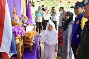 The visit aimed to meet and offer moral support to the family of young Nurazikeen Jehkader, a patient suffering from a ventricular septal defect (VSD), who is under the royal patronage of Her Royal Highness Princess Maha Chakri Sirindhorn. During the visit, a ceremony was held to present the royal monthly financial support, along with relief supplies from the Thai Red Cross Society and from the task force, to alleviate the family’s hardship and uplift their spirits.