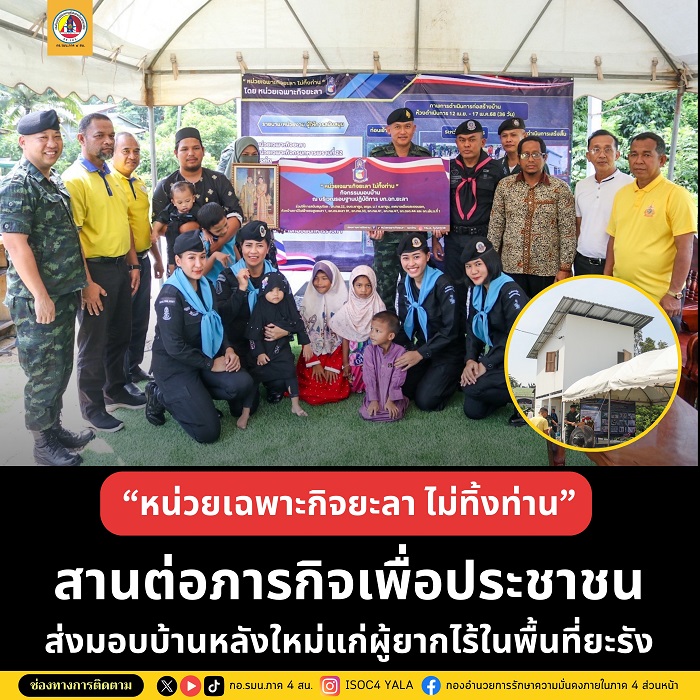 🏡 “Yala Task Force Won’t Leave You Behind” – Continuing the mission for the people, delivering a new home to a disadvantaged resident in Yarang.