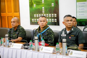 ในการนี้ พลตรี ณรงค์ ตันติสิทธิพร ผู้บัญชาการกองพลทหารราบที่ 15 / ผู้บังคับหน่วยเฉพาะกิจนราธิวาส พร้อมด้วย พันเอก กำธร ศรีเกตุ รองผู้บังคับหน่วยเฉพาะกิจนราธิวาส ผู้บังคับหน่วยในพื้นที่ และกำลังพล ร่วมให้การต้อนรับและเข้าร่วมประชุมสรุปสถานการณ์ด้านความมั่นคง
