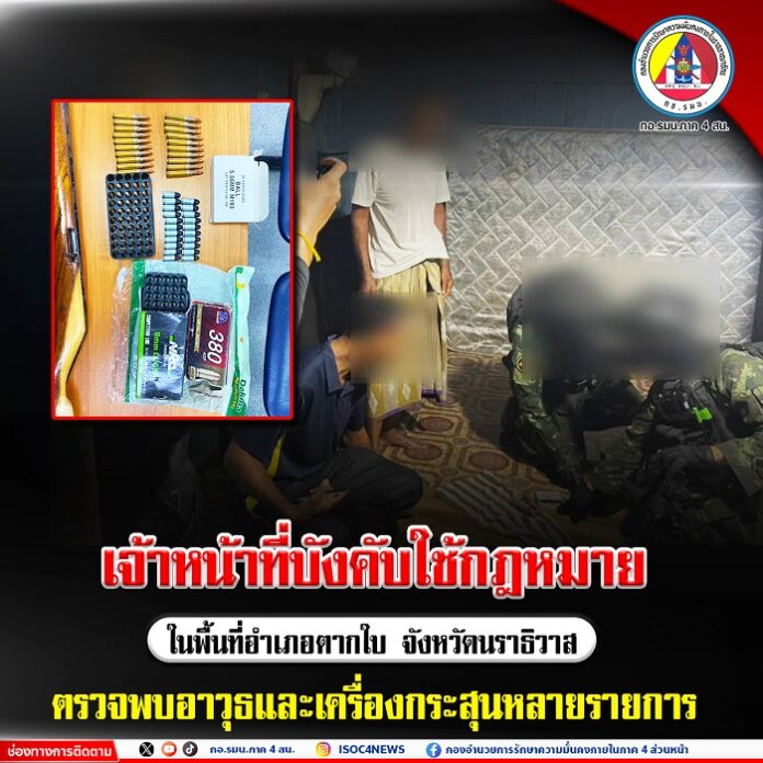Law enforcement officers in Tak Bai District, Narathiwat Province, have discovered multiple weapons and ammunition.