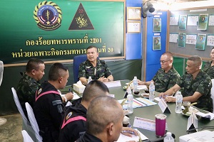 On June 5, 2025, at 10:20 a.m., Major General Waradet Detchaksa, Deputy Commander of the 4th Army Region and Deputy Director of the Internal Security Operations Command Region 4 (Forward Command), together with representatives from the administrative division of ISOC Region 4 (Forward Command), visited Ranger Company 2201, under the 22nd Ranger Regiment Task Force in Yarang District, Pattani Province. The purpose was to monitor mission operations, assess the situation, and deliver clear, thorough, and effective operational guidelines. Colonel Uthen Jeenthonglang, Commander of the 22nd Ranger Regiment Task Force, along with the troops, welcomed the delegation and received the directives.