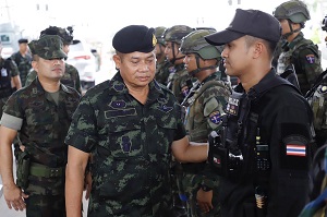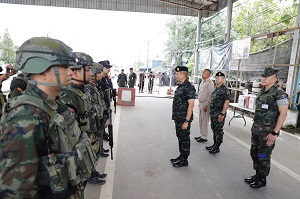 Today (June 5, 2025) at 1:30 PM, Lieutenant General Paisan Nusang, Commander of the Fourth Army Region and Director of Internal Security Operations Region 4, along with the Commander of the Narathiwat Special Task Force and the Marine Corps Special Task Force Commander, visited key security checkpoints in Sungai Kolok District, Narathiwat Province.