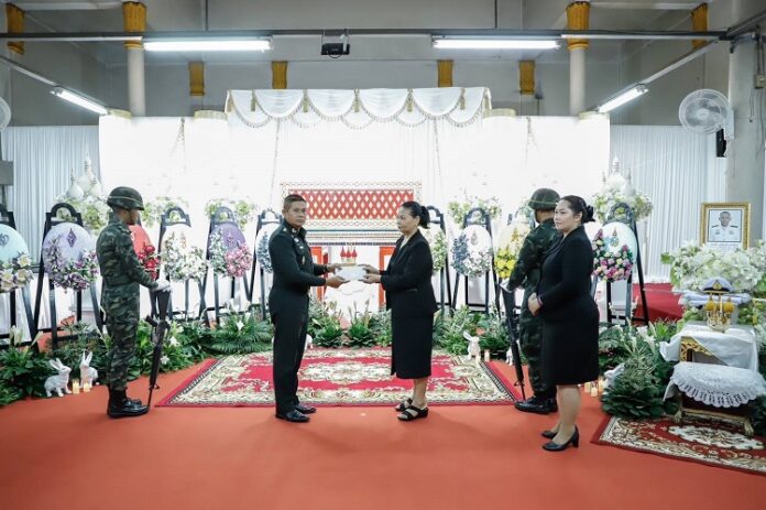 Lieutenant General Paisan Nusang expressed his deepest condolences to the family of the deceased and praised Second Lieutenant Apichart Paphan’s heroic act as a shining example of a selfless, dedicated, and honorable Thai soldier. The 4th Army Commander and Mrs. Waraporn Nusang also presented financial support to the bereaved family as a gesture of compassion and encouragement in this difficult time.