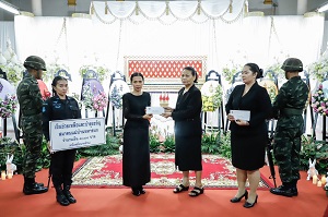 The ceremony was attended by Mrs. Waraporn Nusang, President of the Army Wives Association, 4th Army Region Branch, along with Major General Chalermphon Khamkhiew, Deputy Commander of the 4th Army Region; Major General Niti Tinsulanonda, Deputy Division Commander of the 4th Army Region; Major General Pakorn Chanrachota, Commander of the 42nd Military Circle; Major General Narong Tantisitthiporn, Commander of the 15th Infantry Division; as well as senior officers, military personnel, members of the Army Wives Association (42nd Military Circle Branch), family members, and local citizens who participated in the ceremony with deep sorrow and respect.