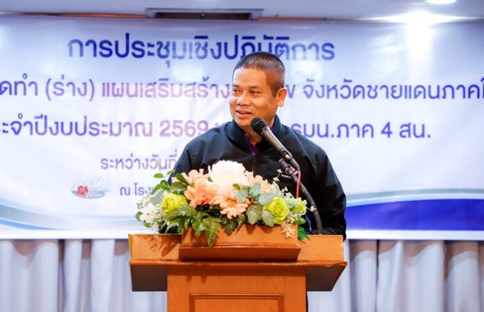 Today (June 6, 2025) at 11:30 a.m., Lieutenant General Paisan Nusang, Commander of the 4th Army Region and Director of the Internal Security Operations Command Region 4 (ISOC Region 4), together with his senior officers, held a workshop to draft the 2025 Peacebuilding Plan for the Southern Border Provinces. The workshop took place from June 3 to 6, 2025, at Haad Kaew Resort Hotel, Singhanakhon District, Songkhla Province. The aim was to drive forward more effective and comprehensive solutions to the issues in the southern provinces, in line with the government’s key policies. Representatives from the ISOC Region 4 Forward Command also participated in the workshop.