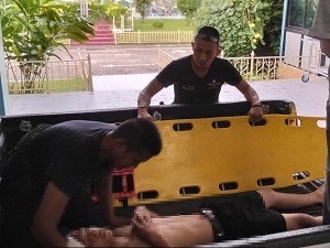 Upon arriving at the scene, the rangers acted swiftly, administering first aid on-site before urgently transporting the injured individual to Cho-airong Hospital for further medical treatment and care.