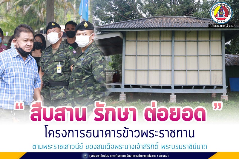 เมื่อวันที่ 13 ม.ค.64 เวลา 14.30 น. พลตรี ไพศาล หนูสังข์ ผู้บัญชาการกองพลทหารราบที่15/ ผู้อำนวยการศูนย์ประสานงานโครงการอันเนื่องมาจากพระราชดำริ พร้อมด้วย พันเอกธนุตม์ พิศาลสิทธิวัฒน์ ผู้บังคับการกรมทหารราบที่152/หัวหน้าคณะทำงานฯที่1 ,ฝ่ายปกครอง, ผู้นำท้องถิ่น ,สมาชิกราษฎรอาสารักษาหมู่บ้าน (อรบ.) และส่วนที่เกี่ยวข้องลงพื้นที่เข้าติดตามความคืบหน้าการปรับปรุงอาคารธนาคารข้าวพระราชทานบ้านทำเนียบ บ้านทำเนียบ ตำบลลำพะยา อำเภอเมือง จังหวัดยะลา ซึ่งจะปรับปรุง ซ่อมแซม เป็นอาคารธนาคารข้าวศูนย์ประวัติศาสตร์ ศูนย์การเรียนรู้ให้กับชุมชน เพื่อเป็นการสืบสาน รักษา ต่อยอด โครงการธนาคารข้าวพระราชทาน ตามพระราชเสาวนีย์ ของสมเด็จพระนางเจ้าสิริกิติ์ พระบรมราชินีนาถ ให้คงอยู่ คู่กับพี่น้องประชาชนในพื้นที่ ซึ่งอยู่ในระหว่างการขั้นตอนดำเนินการ วางแผน การเตรียมการ รูปแบบการจัดแสดงนิทรรศการ พระราชประวัติ พระราชกรณียกิจ พระอัจฉริยภาพ ตลอดจนประวัติความเป็นมาของธนาคารข้าวพระราชทานบ้านทำเนียบ โดยพลตรีไพศาล หนูสังข์ ผู้บัญชาการกองพลทหารราบที่15/ ผู้อำนวยการศูนย์ประสานงานโครงการอันเนื่องมาจากพระราชดำริ ได้กำชับเจ้าหน้าที่ส่วนที่เกี่ยวข้อง ให้ดำเนินวางแผน ด้วยความละเอียด รอบคอบ และให้งานออกมาดีที่สุด เพื่อให้ประชาชน และเยาวชนในพื้นที่สามารถมาศึกษาเป็นแหล่งเรียนรู้ อยู่คู่กับชุมชนต่อไป