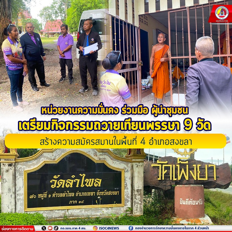Security Agencies Collaborate with Community Leaders to Prepare Candle Offering Ceremony at 9 Temples, Fostering Unity in 4 Districts of Songkhla
