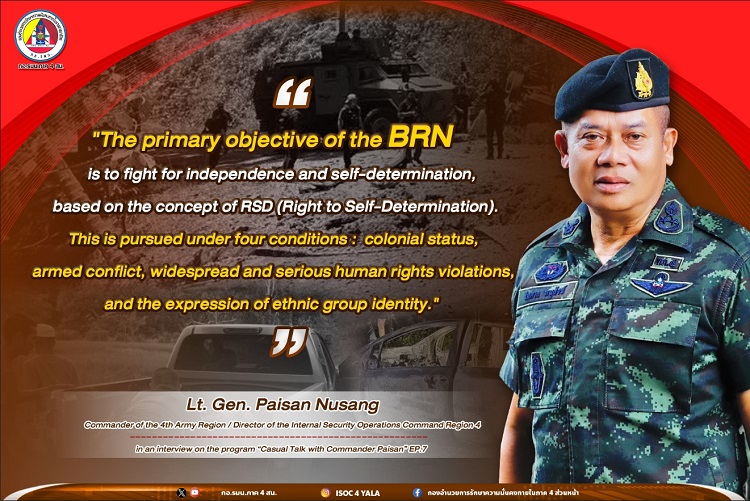 Lt. Gen. Paisan Nusang, Commander of the 4th Army Region / Director of Internal Security Operations Region 4, in an interview on the program “Casual Talk in General Paisan’s Style,” Episode 7