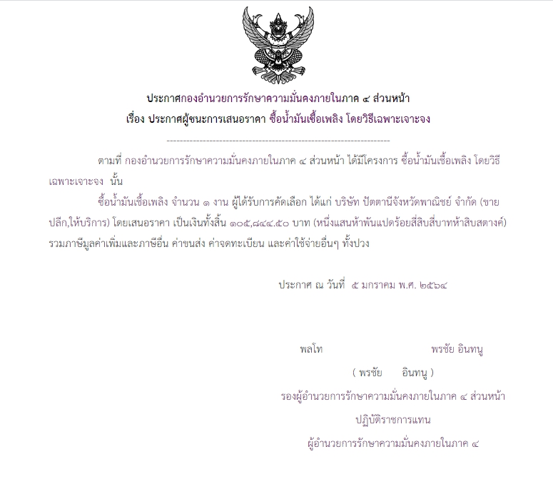 จัดซื้อ จัดจ้างประกาศผู้ชนะการเสนอราคา ประกาศผู้ชนะการเสนอราคา ซื้อซื้อน้ำมันเชื้อเพลิง โดยวิธีเฉพาะเจาะจง ( ๑๐๕,๘๔๔.๕๐ บาท ) January 15, 2021 920 Share Facebook Twitter Google+ Telegram LINE กอ.รมน.ภาค ๔ สน.