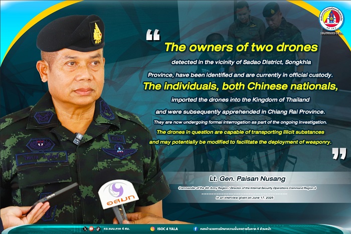Lt.Gen. Paisan Nusang Commander of the 4th Army Region / Director of Internal Security Operations Region 4 , gave this statement on June 17, 2025