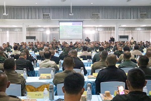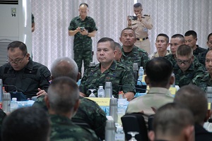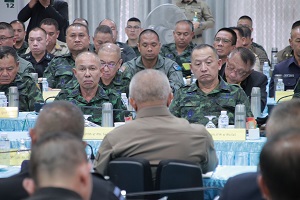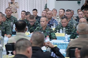 โดยที่ประชุมได้มีการบรรยายสรุปสถานการณ์และแนวโน้มการก่อเหตุรุนแรงในพื้นที่ พร้อมร่วมหารือถึงแนวทางการรักษาความปลอดภัย การควบคุมพื้นที่ การเสริมสร้างความเข้าใจกับพี่น้องประชาชน โดยการขับเคลื่อนฮูกุมปากัต (ธรรมนูญหมู่บ้าน 9 ดี) ขับเคลื่อนขยายผลสู่ชุมชนต่างๆ และการดำเนินการฝึกยกระดับขีดความสามารถของสมาชิกกองอาสารักษาดินแดนจังหวัดชายแดนภาคใต้ ที่ยังคงต้องดำเนินการอย่างต่อเนื่อง เพื่อเสริมสร้างความเข้มแข็งให้กับกำลังภาคประชาชนในการดูแลรักษาความปลอดภัยในพื้นที่ร่วมกับส่วนต่างๆ