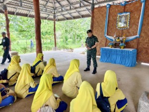 In the afternoon, at 1:00 PM, the youth group visited the Royal Demonstration Farm Project of Her Majesty Queen Sirikit The Queen Mother at Ban Champu, Tha Thong Subdistrict, Raman District, to study real-life applications of the Sufficiency Economy Philosophy. They were welcomed and guided by Colonel Sitthisak Jenbanjong, Commander of the 152nd Infantry Regiment and Head of the Royal Initiative Coordination Center Team 1, Yala Province.