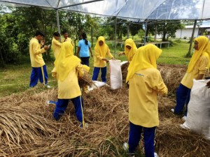 ในช่วงบ่าย เวลา 13.00 น. คณะเยาวชนได้เดินทางไปยังโครงการฟาร์มตัวอย่างในสมเด็จพระนางเจ้าสิริกิติ์ พระบรมราชินีนาถ พระบรมราชชนนีพันปีหลวงบ้านจำปู ตำบลท่าธง อำเภอรามัน เพื่อศึกษาดูงานการดำเนินชีวิตตามหลักปรัชญาของเศรษฐกิจพอเพียง โดยมี พันเอก สิทธิศักดิ์ เจนบรรจง ผู้บังคับการกรมทหารราบที่ 152 / หัวหน้าคณะทำงานโครงการอันเนื่องมาจากพระราชดำริฯ คณะที่ 1 จังหวัดยะลา ให้การต้อนรับและนำเยาวชนชมกิจกรรมในพื้นที่จริง
