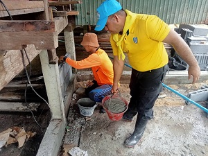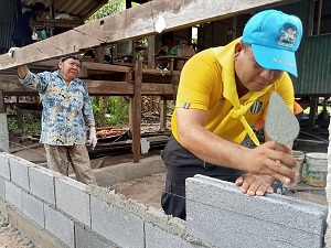 บรรยากาศในพื้นที่เต็มไปด้วยความร่วมมือและน้ำใจ ทั้งเจ้าหน้าที่และชาวบ้านต่างช่วยกันลงมือซ่อมแซมบ้านหลังดังกล่าวอย่างเต็มกำลัง ขนทราย กวนปูน ก่ออิฐ เพื่อให้บ้านกลับมาอยู่ในสภาพที่มั่นคงและปลอดภัย