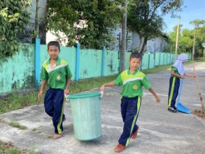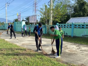 นอกจากการส่งเสริมแนวคิดและจิตสำนึกในการรักและหวงแหนสถาบันหลักของชาติแล้ว เจ้าหน้าที่และนักเรียนยังได้ร่วมกันทำความสะอาดบริเวณโดยรอบโรงเรียน ช่วยกันพัฒนาให้โรงเรียนมีความสะอาดและน่าอยู่ สะท้อนถึงความรับผิดชอบร่วมกันในการดูแลสถานศึกษา ซึ่งเป็นศูนย์กลางของการเรียนรู้และพัฒนาทักษะชีวิตของเยาวชนในพื้นที่