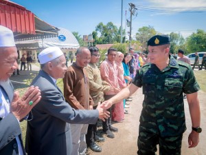 Before departing, the 4th Army Region Commander and his delegation visited Wat Prawet Phupha (Wat Ban Trang) to meet with the Thai Buddhist community in Trang Subdistrict, Mayo District, Pattani Province. He spoke with locals about promoting both religions in the area and encouraging peaceful multicultural coexistence. Ban Trang is known as a “two-way community” where Thai Buddhists and Thai Muslims have lived together in harmony for generations. The commander also toured local attractions within the temple, including a 300-year-old carved takhian wood, one of the area’s significant cultural landmarks.