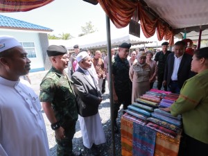 Pada kesempatan ini, Panglima Tentera Wilayah Ke-4 / Pengarah Keselamatan Dalam Negeri Wilayah Ke-4 turut melawat booth produk tempatan Mukim Trang, termasuk kain tenunan rumah Trang atau “Kain Cuan Tani” yang merupakan warisan tenunan lama Pattani, serta aktiviti pertanian tradisional masyarakat tempatan – seperti proses menampi padi menggunakan nyiru, memijak padi, dan menumbuk padi dengan tangan yang menunjukkan kepakaran petani tempatan.