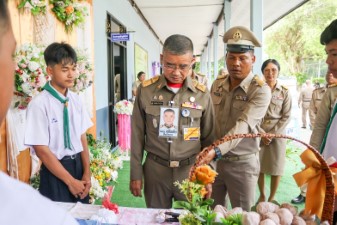 ต่อมาเวลา 13.30 น. พลเอก เฉลิมชัย สิทธิสาท องคมนตรี ลงพื้นที่ติดตามการพัฒนาโรงเรียนในโครงการกองทุนการศึกษา ภายใต้แนวทาง 3 เสาหลัก 5 กลยุทธ์ ที่มุ่งเน้นให้เด็กได้เรียนในโรงเรียนที่มีคุณภาพ เมื่อสำเร็จการศึกษาแล้วจะเป็นเด็กที่มีวินัย มีคุณธรรมและจริยธรรม สอดคล้องกับพระบรมราโชบายด้านการศึกษาของ พระบาทสมเด็จพระบรมชนกาธิเบศร มหาภูมิพลอดุลยเดชมหาราช บรมนาถบพิตร รัชกาลที่ 9 และ พระบาทสมเด็จพระเจ้าอยู่หัว รัชกาลที่ 10 ณ โรงเรียนบ้านบาละ อำเภอกาบัง จังหวัดยะลา และ โรงเรียนคุรุชนพัฒนา อำเภอเมือง จังหวัดยะลา เพื่อทบทวนแผนพัฒนาโรงเรียนและสอบถามปัญหาข้อขัดข้องกับผู้อำนวยการโรงเรียน คณะครู นักเรียน ตัวแทนคณะกรรมการสถานศึกษา และผู้นำชุมชน เน้นสร้างความพร้อมด้านกายภาพให้แก่โรงเรียน สร้างจิตสำนึก “ให้ครูรักนักเรียน ให้นักเรียนรักครู” โดยทั้งสองโรงเรียนมีการปรับพื้นฐานให้กับเด็กนักเรียนตั้งแต่ระดับชั้นอนุบาล จนถึงระดับมัธยมศึกษา โดยสอดแทรกคุณธรรม จริยธรรม ส่งเสริมให้อ่านออกเสียงอ่านจับใจความ ผ่านกิจกรรม “อ่านวันละหน้า เขียนวันละบรรทัด” เน้นกระตุ้นผู้เรียนให้เกิดการเรียนรู้แบบแอคทีฟเลินนิ่ง เป้าหมายให้ผู้เรียนมีความรู้และทักษะความสามารถที่คงทนผ่านการเรียนรู้ด้วยตนเอง โดยเฉพาะการพัฒนานวัตกรรมที่เป็นประโยชน์ต่อสังคม ด้วยการพัฒนาด้วยครูภายในโรงเรียน , การพัฒนาด้วยปราชญ์ชาวบ้านหรือผู้มีความรู้ในชุมชน, การพัฒนาโดยนำนักเรียนไปอบรมเพิ่มความรู้และทักษะกับหน่วยงานภายนอก