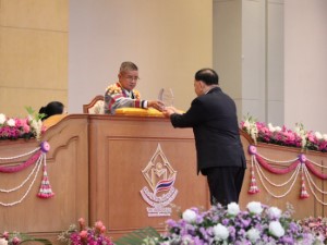 โอกาสนี้ พลเอก เฉลิมชัย สิทธิสาท องคมนตรี กล่าวชื่นชมการจัดโครงการและกิจกรรมต่าง ๆ ของโรงเรียน ซึ่งได้เห็นพัฒนาการเปลี่ยนแปลงในทางดีขึ้น ที่จะนำพานักเรียนสู่เป้าหมายในการจัดการศึกษาได้อย่างมีคุณภาพ และเข้าใจในสภาวะแวดล้อมหลายด้าน แต่บุคลากรครูทุกท่าน ก็ทำในกรอบที่ดีที่สุด ภายใต้สังคมพหุวัฒนธรรมของผู้นับถือศาสนาพุทธและศาสนาอิสลาม มีการปรับรายละเอียดการสอนให้เหมาะสมตามแต่ละพื้นที่ให้เข้ากับท้องถิ่นเพื่อให้ปฏิบัติศาสนกิจได้ถูกต้อง และการปรับนี้ไม่มีผลกระทบกับนักเรียนส่วนใหญ่ ย้ำสถานศึกษาต้องสร้างพื้นฐานแก่เยาวชนให้เป็นคนดี มีทัศนคติที่ดีและถูกต้องต่อบ้านเมือง คือพื้นฐานชีวิตที่มั่นคงเข้มแข็ง มีคุณธรรม มีงานทำมีอาชีพ และเป็นพลเมืองดีมีระเบียบวินัย ตามพระบรมราโชบายของ พระบาทสมเด็จพระบรมชนกาธิเบศร มหาภูมิพลอดุลยเดชมหาราช บรมนาถบพิตร และ พระบาทสมเด็จพระเจ้าอยู่หัว ที่พระราชทานไว้