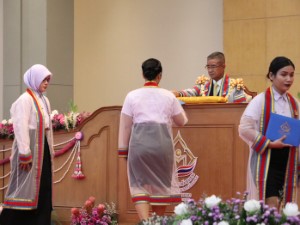 จากนั้นเวลา 10.20 น. พลเอก เฉลิมชัย สิทธิสาท องคมนตรี เป็นประธานในพิธีประสาทอนุปริญญาบัตรแก่ผู้สำเร็จการศึกษาจากวิทยาลัยชุมชนยะลา ประจำปีการศึกษา 2567 ที่หอประชุมเฉลิมพระเกียรติ 80 พรรษา มหาวิทยาลัยราชภัฏยะลา อำเภอเมืองยะลา จังหวัดยะลา ซึ่งมีผู้เข้ารับอนุปริญญาบัตรในวันนี้ จำนวน 7 สาขาวิชา 338 คน ประกอบด้วย สาขาวิชาการพัฒนาชุมชน จำนวน 18 คน, สาขาวิชาการปกครองท้องถิ่น จำนวน 47 คน, สาขาวิชาการศึกษาปฐมวัย จำนวน 144 คน, สาขาวิชาเทคโนโลยีการเกษตร จำนวน 24 คน, สาขาวิชาสาธารณสุขชุมชน จำนวน 33 คน, สาขาวิชาการจัดการทั่วไป จำนวน 44 คน และสาขาวิชาคอมพิวเตอร์ธุรกิจ จำนวน 28 คน ในการนี้องคมนตรีได้มอบโล่ประกาศเกียรติคุณแก่ผู้มีคุณูปการที่ก่อประโยชน์กับวิทยาลัยชุมชนยะลา รวมถึงผู้สำเร็จการศึกษาที่มีผลการเรียนดีเด่น เพื่อเป็นส่วนหนึ่งในการส่งต่อพลังเพื่อการศึกษาที่ดีนำไปสู่การพัฒนาชุมชนอย่างยั่งยืน นับเป็นความภาคภูมิใจในความสำเร็จของนักศึกษาทุกคน ซึ่งถือเป็นก้าวสำคัญในการร่วมกันสร้างสังคมแห่งการเรียนรู้ และพัฒนาชุมชนอย่างยั่งยืน