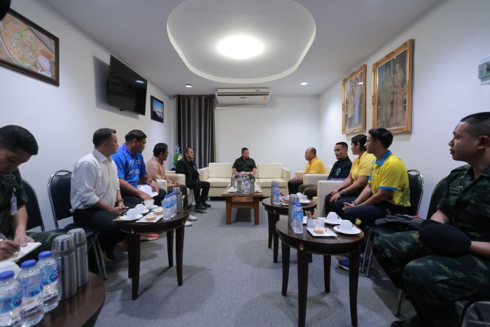 วันที่ 25 มิถุนายน 2568 เวลา 15.50 น. ณ ห้องรับรองรวงผึ้ง กองอำนวยการรักษาความมั่นคงภายในภาค 4 ส่วนหน้า ตำบลเขาตูม อำเภอยะรัง จังหวัดปัตตานี นายอับดุลเล๊าะ มะหลี ประธานชมรมกีฬาปันจักสีลัตจังหวัดนราธิวาส พร้อมด้วย นายรพี มามะ ผู้แทนสมาคมกีฬาแห่งจังหวัดนราธิวาส คณะกรรมการชมรมฯ และนักกีฬาปันจักสีลัตทีมชาติไทย เข้าพบ พลโท ไพศาล หนูสังข์ แม่ทัพภาคที่ 4 / ผู้อำนวยการรักษาความมั่นคงภายในภาค 4 เพื่อหารือแนวทางการส่งเสริมและสนับสนุนกีฬาปันจักสีลัตในพื้นที่จังหวัดชายแดนภาคใต้