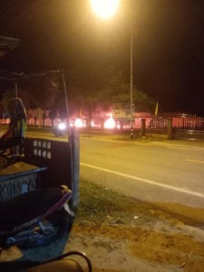 Second incident in Saiburi District: At 9:00 PM, the perpetrators burned tires and scattered spike strips on rural highway number 4015, near Ban Bang Kao Tai, Village No. 2, Bang Kao Subdistrict, Saiburi District, Pattani Province.