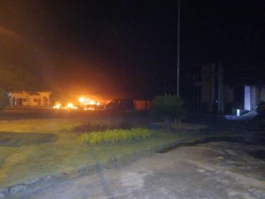 Lokasi kejadian pertama: Penjenayah membakar pejabat pendaftaran dan 4 buah kenderaan milik Majlis Pentadbiran Tambon Paen, Daerah Saiburi, termasuk lori bomba, lori sampah, dan dua buah kenderaan pikap.