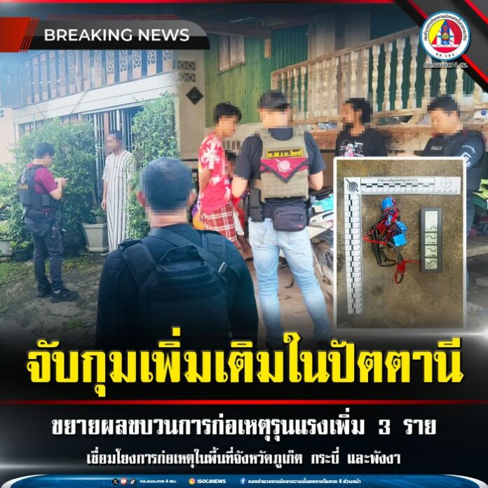 💢 Further arrests in Pattani as authorities expand investigation into violent operations, arresting 3 additional suspects linked to incidents in Phuket, Krabi, and Phang Nga.