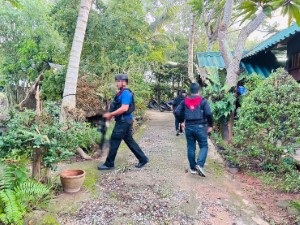 หลังที่ 3 บ้านเลขที่ 86/7 หมู่ที่ 5 ตำบลม่วงเตี้ย อำเภอแม่ลาน จังหวัดปัตตานีพบ นายรอมือซี (สงวนนามสกุล) ผู้ต้องสงสัย