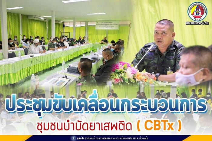 วันนี้ ( 15 มกราคม 2564 ) เวลา 14.00 น. ณ ห้องประชุม ศูนย์ป้องกันและแก้ไขปัญหายาเสพติด กองอำนวยการรักษาความมั่นคงภายในภาค 4 ส่วนหน้า ค่ายสิรินธร ตำบลเขาตูม อำเภอยะรัง จังหวัดปัตตานี พันเอก กฤษฎา คงพันธุ์ รองผู้อำนวยการศูนย์ป้องกันและแก้ไขปัญหายาเสพติด กองอำนวยการรักษาความมั่นคงภายในภาค 4 ส่วนหน้า เป็นประธานการประชุมขับเคลื่อนกระบวนการชุมชนบำบัดยาเสพติด ( CBTx ) เพื่อร่วมขับเคลื่อนการแก้ไขปัญหายาเสพติดในพื้นที่จังหวัดชายแดนภาคใต้ โดยมี พลตรี สมชาย โปณะทอง รองหัวหน้าสำนักงานคณะกรรมการขับเคลื่อนการแก้ไขปัญหาจังหวัดชายแดนภาคใต้ส่วนหน้า พร้อมด้วย พลตรี วีระชาติ ปาลกะวงศ์ ณ อยุธยา ฝ่ายอำนวยการผู้แทนพิเศษของรัฐบาล, ผู้แทนศูนย์อำนวยการบริหารจังหวัดชายแดนภาคใต้, ผู้แทนผู้ว่าราชการจังหวัดยะลา, ปัตตานี, นราธิวาส และสงขลา, ผู้แทนกองกำลังตำรวจจังหวัดชายแดนภาคใต้, ผู้แทนหน่วยเฉพาะกิจในพื้นที่, บาบอเจ้าของสถานบำบัดฟื้นฟูบ้านอุ่นไอรัก, กำนัน ผู้ใหญ่บ้าน, ผู้แทนสาธารณสุขและหัวหน้าส่วนราชการ ที่เกี่ยวข้องเข้าร่วมประชุม