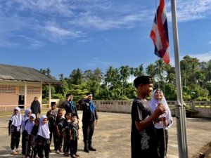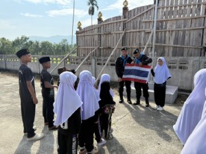 On June 29, 2025, at 08:00 AM, the 41st Ranger Task Force, through the Civil Affairs Operation Team of Ranger Company 4109, conducted a flag ceremony activity at the Islamic Religious Education Center (Tadika) Yamiatul Islam, located in Ban Pulasano, Village No. 3, Jakwa Subdistrict, Raman District, Yala Province.