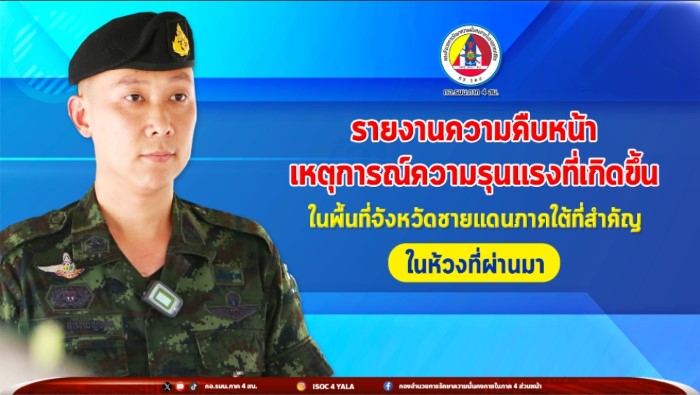 วันนี้ (30 มิถุนายน 2568) เวลา 14.15 น. ที่ กองอำนวยการรักษาความมั่นคงภายในภาค 4 ส่วนหน้า ค่ายสิรินธร ตำบลเขาตูม อำเภอยะรัง จังหวัดปัตตานี พันเอก ปองพล สุทธิเบญจกุล รองโฆษกองอำนวยการรักษาความมั่นคงภายในภาค 4 ส่วนหน้า เปิดเผยเกี่ยวกับความคืบหน้าเหตุการณ์ความรุนแรงที่เกิดขึ้นในพื้นที่จังหวัดชายแดนภาคใต้ที่สำคัญในห้วงที่ผ่านมา โดยเรื่องแรก คือ ความคืบหน้าเหตุคนร้ายลอบวางเพลิงโรงจอดรถองค์การบริหารส่วนตำบลแป้น ทำให้ยานพาหนะของทางราชการ คือ รถดับเพลิง, รถเก็บขยะ, รถกู้ชีพ, รถกระบะ 4 ประตู, รถจักรยานยนต์ และ อาคารที่ว่าการองค์การบริหารส่วนตำบลแป้น บ้านจะเฆ่ตก หมู่ที่ 3 ตำบลแป้น อำเภอสายบุรี จังหวัดปัตตานี ได้รับความเสียหาย แต่ไม่มีผู้ได้รับบาดเจ็บแต่อย่างใด ทั้งนี้ยังพบการก่อกวนและวัตถุต้องสงสัย บริเวณรอบๆพื้นที่เกิดเหตุ ซึ่งคาดว่าเป็นการกระทำของคนร้าย เพื่อต้องการป้องกันกำลังเจ้าหน้าที่ที่อาจเข้ามาเพิ่มเติม ทำให้คนร้ายมีช่องทางในการหลบหนีได้ โดยเหตุการณ์ก่อกวนและวัตถุต้องสงสัย ที่อยู่บริเวณรอบที่เกิดเหตุรายละเอียด ดังนี้