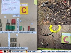 ล่าสุดเมื่อวานนี้ (วันที่ 29 มิถุนายน 2568) เจ้าหน้าที่เข้าตรวจสอบที่เกิดเหตุเพื่อเก็บวัตถุพยานหลักฐาน ตรวจพบ ปลอกกระสุนปืน ขนาด 5.56 มิลลิเมตร จำนวน 400 ปลอก, กระสุนปืน ขนาด 5.56 มิลลิเมตร จำนวน 55 นัด, ปลอกกระสุน ขนาด 7.62 มิลลิเมตร nato จำนวน 210 ปลอก, กระสุนปืนขนาด 7.62 มิลลิเมตร nato จำนวน 6 นัด, ปลอกกระสุนปืนขนาด 7.62 มิลลิเมตร rus จำนวน 41 ปลอก, กระสุนปืน ขนาด 7.62 มิลลิเมตร rus จำนวน 2 นัด, ปลอกกระสุนปืนลูกซอง จำนวน 70 ปลอก, กระสุนปืนลูกซอง จำนวน 13 นัด, ปลอกกระสุนปืน ขนาด 9 มิลลิเมตร จำนวน 7 นัด, กระเดื่อง จำนวน 19 ชิ้น และ สลักนิรภัย จำนวน 14 ชิ้น ซึ่งจะเห็นได้ว่าในห้วงที่ผ่านมากลุ่มคนร้ายมีความพยายามที่จะทำลายกำลังที่เป็นเชิงสัญลักษณ์ของรัฐในพื้นที่ แต่มีข้อสังเกตว่ากำลังหลักที่เป็นเชิงสัญลักษณ์ของรัฐในพื้นที่จังหวัดชายแดนภาคใต้ส่วนใหญ่เป็นคนมลายูมุสลิมในพื้นที่เกือบ 90 เปอร์เซ็นต์ นั่นก็คือ กำลังพลกองอาสารักษาดินแดนนั่นเอง และเรื่องที่ 3 คือ เหตุคนร้ายก่อกวน เผาทำลายกล้องวงจรปิด เมื่อวันที่ 29 มิถุนายน 2568 เวลาประมาณ 00.10 น. เหตุเกิดในพื้นที่จังหวัดปัตตานี จำนวน 14 จุด กล้องได้รับความเสียหาย จำนวน 21 ตัว ดังนี้