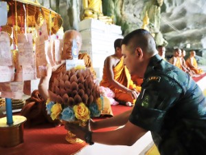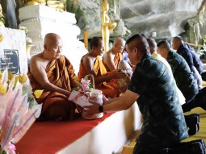 💂 Pada kesempatan ini, Leftenan Jeneral Paisan Nusang telah mempersembahkan dana Kathina bersama barangan keagamaan kepada Phra Ajarn Luang Por Buathong Suwanno dengan jumlah melebihi 200,000 baht. Phra Ajarn Luang Por Buathong Suwanno telah berkhidmat seorang diri di tempat ini lebih daripada 30 tahun. Semua pihak menunjukkan keprihatinan dan bekerjasama dalam usaha memelihara dan membangunkan tempat ibadat ini sebagai pusat spiritual bagi penganut Buddha di wilayah ini, walaupun berhadapan dengan keadaan keselamatan yang mencabar. Namun, agama Buddha tetap kukuh di Wilayah Sempadan Selatan.