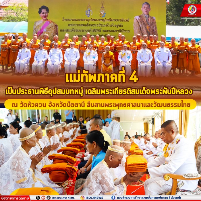 🌷 Today (5 July 2025) at 09:00 AM, at Wat Hua Khuan, Na Ket Subdistrict, Khok Pho District, Pattani Province, Lieutenant General Paisan Nusang, Commander of the 4th Army Region and Director of Internal Security Operations Command Region 4, presided over the annual mass ordination ceremony held in honor of Her Majesty Queen Sirikit the Queen Mother.