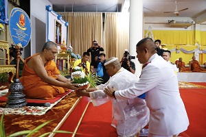 “Menuju Naungan Kasivapassa” Panglima Wilayah Ke-4 merasmikan Majlis Upacara Ordination Beramai-ramai sempena Memuliakan Seri Paduka Baginda Raja Permaisuri di Wat Thongdee, Wilayah Narathiwat, sebagai usaha meneruskan kesinambungan agama Buddha di kawasan selatan Thai.