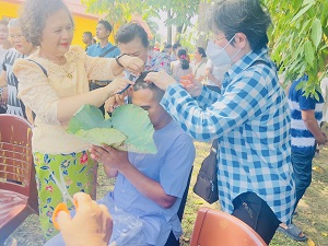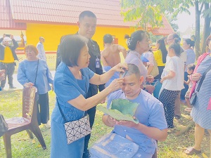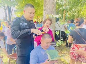 On July 5, 2025, at 06:00 a.m., the Special Task Force of the 49th Ranger Regiment deployed 3 personnel, along with 3 local volunteers from Si Sakhon District, to participate in the head-shaving ceremony for novice monks (Naka) as part of the mass ordination program in honor of Her Majesty Queen Sirikit, the Queen Mother of Thailand.