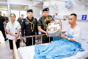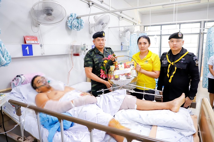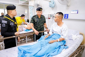 On this occasion, the Fourth Army Region Commander brought a gift basket from General Phana Klaewplotthuk, Commander-in-Chief of the Royal Thai Army, along with moral support funds to present to the injured soldiers. He inquired about the incident and expressed admiration for the bravery and sacrifice of the officers, emphasizing that the government and all levels of command are fully prepared to provide assistance — including legal rights, welfare, and both physical and mental rehabilitation.