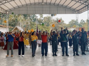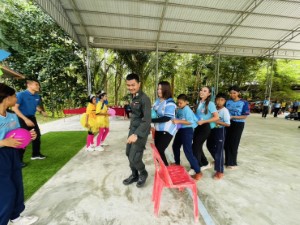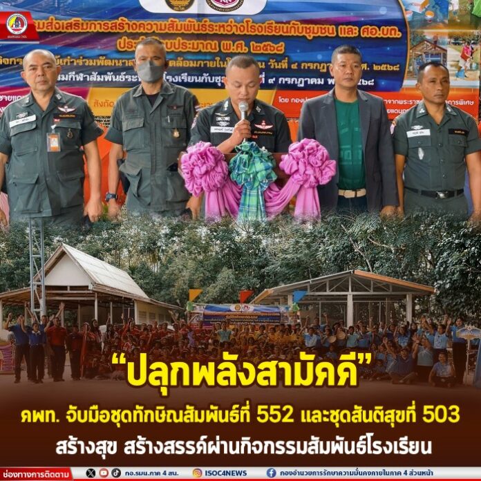 เมื่อวันที่ 9 กรกฎาคม 2568 เวลา 09.00 น. ที่ โดมอเนกประสงค์บ้านช่อนทอง หมู่ที่ 9 ตำบลทับช้าง อำเภอนาทวี จังหวัดสงขลา ดร.ดุลยรัตน์ บูยูโสะ ประธานคณะขับเคลื่อนการพูดคุยสันติสุขระดับพื้นที่ (คพท.) พร้อมด้วยผู้แทนสำนักงานขับเคลื่อนการพูดคุยสันติสุขระดับพื้นที่ กองอำนวยการรักษาความมั่นคงภายในภาค 4 ส่วนหน้า, ชุดทักษิณสัมพันธ์ที่ 552, ชุดสันติสุขที่ 503 หน่วยเฉพาะกิจสันติสุข ร่วมกิจกรรมส่งเสริมการสร้างความสัมพันธ์โรงเรียนกับชุมชน และศูนย์อำนวยการบริหารจังหวัดชายแดนภาคใต้ (ศอ.บต.) จัดขึ้นโดยโรงเรียนตำรวจตระเวนชาแดนเชิญ พิศลยบุตร เพื่อเสริมสร้างความสัมพันธ์ที่ดีระหว่างโรงเรียน ชุมชน และ ศอ.บต. ผ่านความร่วมมือในการจัดกิจกรรมสร้างสรรค์ ส่งเสริมความสามัคคีในชุมชนโดยรอบโรงเรียน โดยมี พันตำรวจโท ยศพณธ์ รุ่งสวัสดิ์ รองผู้บังคับหน่วยเฉพาะกิจตำรวจตะเวนชายแดนที่ 43 เป็นประธานในพิธีเปิด พร้อมด้วย นางสาวนิชาภา หมื่นไกร ผู้อำนวยการกองประสานงานโครงการอันเนื่องมาจากพระราชดำริและกิจการพิเศษ ศูนย์อำนวยการบริหารจังหวัดชายแดนภาคใต้, นางสาวอลิษา องศารา ผู้ช่วยเลขานุการคณะขับเคลื่อนการพูดคุยสันติสุขระดับพื้นที่ กองอำนวยการรักษาความมั่นคงภายในภาค 4 ส่วนหน้า / ผู้ช่วยเลขานุการคณะกรรมการศูนย์ประสานงานด้านเด็กและสตรีในจังหวัดชายแดนภาคใต้ ศูนย์อำนวยการบริหารจังหวัดชายแดนภาคใต้ ตลอดจน ครูและบุคลากรทางการศึกษา ผู้นำท้องที่ ผู้นำท้องถิ่น พี่น้องประชาชนในพื้นที่ร่วมกิจกรรมด้วยความอบอุ่น