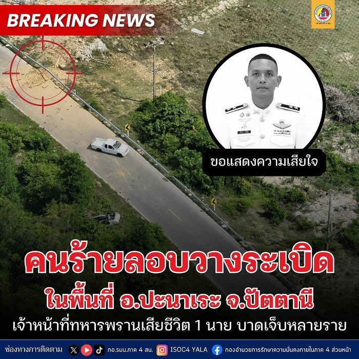 The Internal Security Operations Command Region 4 Forward (ISOC Region 4 Forward) affirms that all state officials perform their duties based on the rule of law and with strict respect for the human rights of all suspects. The process remains fully open to scrutiny. Authorities are continuing their investigation and expanding their efforts to identify connections with other incidents, as attacks in the southern border provinces remain a core strategy of the BRN movement to pressure the government into formal negotiations.