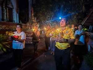 พลังศรัทธาในพื้นที่จังหวัดสงขลา โดยหน่วยเฉพาะกิจตำรวจตระเวนชายแดนที่ 43 นำโดย พันตำรวจโท ธีระโชติ ปฐมวณิชกะ พร้อมเจ้าหน้าที่ในสังกัด เข้าร่วมพิธีทำบุญ ฟังธรรม และเวียนเทียน ณ วัดในวังพระอารามหลวง อำเภอนาทวี จังหวัดสงขลา เพื่อสืบสานประเพณีและกระชับความสัมพันธ์ระหว่างรัฐกับประชาชน