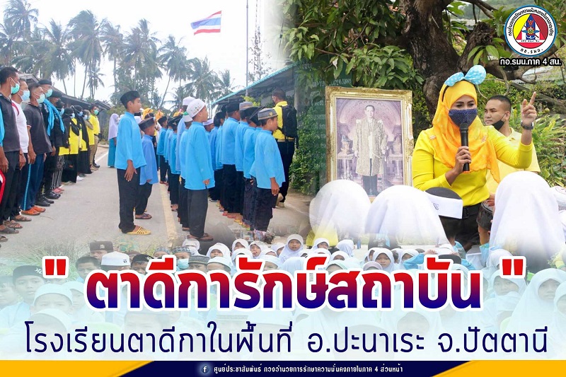 เมื่อ (16 มกราคม 2564) เวลา 09.00 – 11.00 น. ณ ตาดีกานูรุลฮูลา บ้านแฆแฆ หมู่ที่ 4 ตำบลบ้านน้ำบ่อ อำเภอปะนาเระ จังหวัดปัตตานี หน่วยเฉพาะกิจกรมทหารพรานที่ 42 เข้าดำเนินการจัดกิจกรรมตามโครงการ “ตาดีการักษ์สถาบัน” กับเยาวชนในสถานศึกษาอิสลามประจำมัสยิด หรือตาดีกา ณ ตาดีกานูรุลฮูลา บ้านแฆแฆ หมู่ที่ 4 ตำบลบ้านน้ำบ่อ อำเภอปะนาเระ จังหวัดปัตตานี