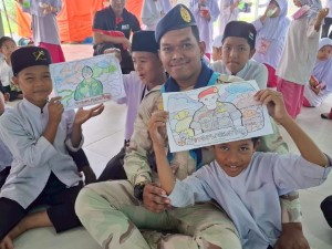 Meanwhile, Peacekeeping Unit 101, in collaboration with Taskin Samphan Unit 112 and members of the Territorial Defense Volunteer Unit of Kolam Subdistrict, organized an educational activity about the royal duties of His Majesty King Maha Vajiralongkorn at the Islamic Education Center of Nurul Lahar Mosque, Ban Sata, Village No. 3, Kolam Subdistrict, Yarang District, Pattani Province. The event included drawing and coloring activities and a symbolic display of “WE ARE THAI – เราคือไทย” to honor His Majesty on the occasion of his 73rd birthday on July 28, 2025.