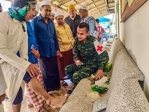 อีกหนึ่งภารกิจสำคัญในครั้งนี้คือการจัด “ชุดหมอเดินเท้า” ให้บริการตรวจสุขภาพเบื้องต้นแก่ประชาชนในพื้นที่ เนื่องจากสภาพอากาศในพื้นที่มีความแปรปรวนบ่อยครั้ง ซึ่งอาจส่งผลกระทบต่อสุขภาพ โดยเน้นให้ความช่วยเหลือด้วยความห่วงใยและใส่ใจอย่างต่อเนื่อง ซึ่งสะท้อนถึงความตั้งใจของหน่วยทหารในพื้นที่ในการเข้าถึง เข้าใจ และให้การสนับสนุนประชาชนอย่างใกล้ชิด เพื่อสร้างสันติสุขและความมั่นคงในพื้นที่อย่างยั่งยืน