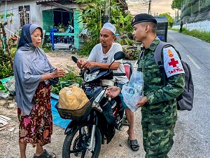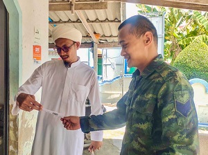 On July 13, 2025, the 1st Infantry Task Force (TF 1 INF) deployed personnel to local communities in Bannang Sata District, Yala Province, and Yarang District, Pattani Province to meet and engage with local residents. The mission aimed to foster mutual understanding and continuously strengthen security at the community level. Troops focused on open conversations to understand the living conditions and needs of the people, as well as to share accurate and reliable information—particularly regarding the prevention of misinformation and disinformation spread on social media, which could lead to misunderstandings and social divisions.