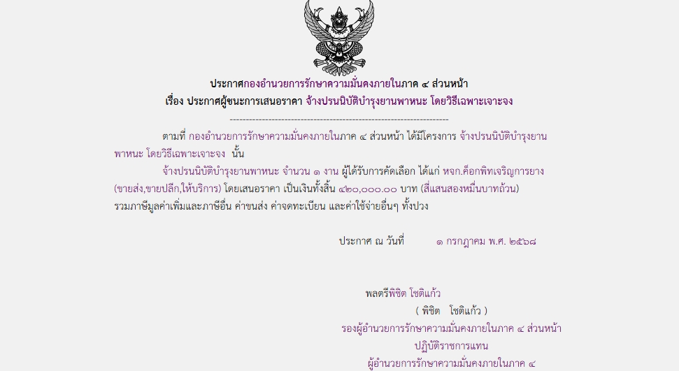 จัดซื้อ จัดจ้างประกาศผู้ชนะการเสนอราคา ประกาศผู้ชนะการเสนอราคา จ้างปรนนิบัติบำรุงยานพาหนะ โดยวิธีเฉพาะเจาะจง July 15, 2025 158 Share Facebook Twitter Google+ Telegram LINE
