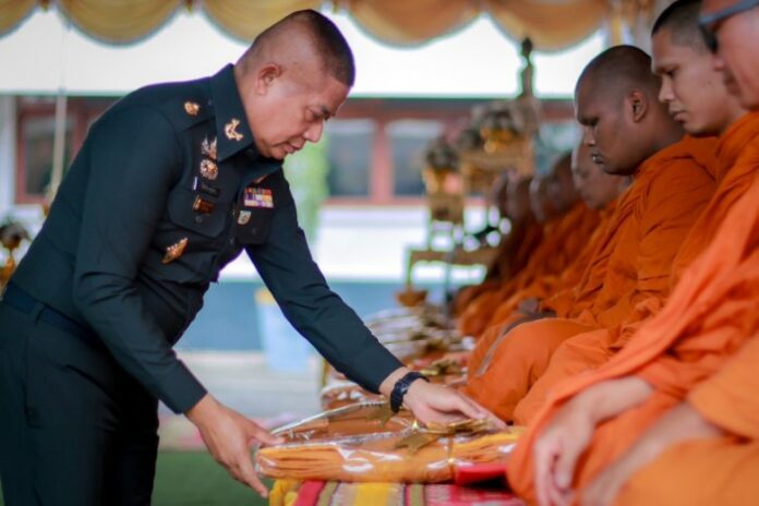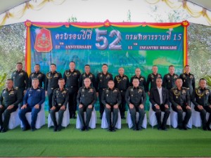 On July 17, 2025, at 10:20 AM, at the 15th Infantry Regiment, Wachirawut Camp, Mueang District, Nakhon Si Thammarat Province, Lieutenant General Paisan Nusang, Commander of the 4th Army Region, presided over the merit-making ceremony held in honor of the 52nd anniversary of the establishment of the 15th Infantry Regiment. The ceremony aimed to dedicate merit to the spirits of fallen soldiers and to bring auspiciousness to the unit, while also boosting morale and unity among personnel and their families. Attendees included commanders from the 4th Army Region, members of the Army Wives Association (15th Infantry Regiment branch), subordinate units in the area, former commanders, representatives from government and private sectors, as well as members of the public.