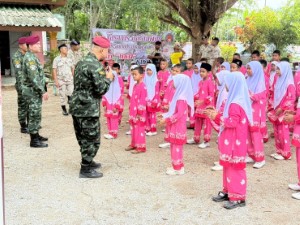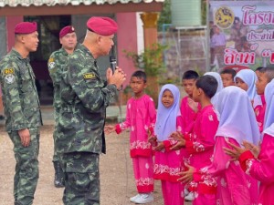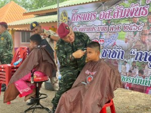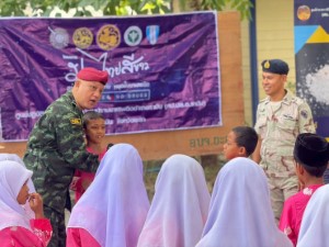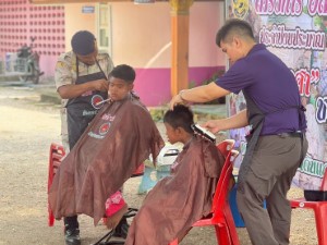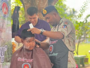 The Peacekeeping Task Force, led by Unit 302 in collaboration with Unit 331 (Southern Relations Task Force) and the 5th District Volunteer Defense Company of Raman, organized the “Volunteer Bond – Singha Kesa & Cha Chak Kabu” activity under the project “White Ministry of Interior – Creating Safe Zones and Ending Drug Abuse.” The event took place at Ban Pong Ta School, Village No. 5, Bu Mang Subdistrict, Raman District, Yala Province. Its goal was to promote knowledge and build resilience among students, especially regarding traffic signs—an essential foundation for safe daily living. The event also promoted student discipline by providing free haircuts for male students in accordance with school regulations. This not only helped reduce financial burdens for families but also instilled confidence and discipline in the students.